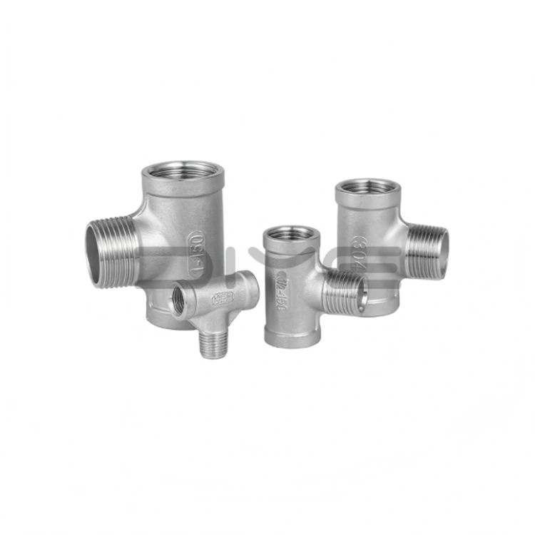 DIYE VOŽTUVAS Nerūdijančio plieno srieginiai trišakiai yra pagaminti iš aukštos kokybės SS304 (CF8) ir SS316L (CF8M) nerūdijančio plieno. Prieš išvežant iš gamyklos, atliekami spektrinės sudėties bandymai, siekiant užtikrinti mechaninį stabilumą ir atsparumą korozijai.